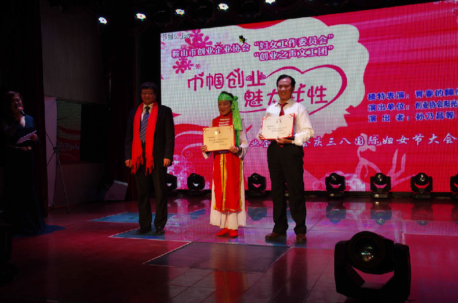 市婦聯(lián)副主席姜秀珠、市工商聯(lián)副主席張靜、市科協(xié)副主席白雪潔、市民政局孫昱處長、市經(jīng)信委李林杰處長、市志愿服務(wù)協(xié)會劉麗波秘書長等領(lǐng)導(dǎo)出席了盛會。協(xié)會婦女工作委員會主任包素芹宣讀了協(xié)會《關(guān)于婦女委員會開展崗位建功活動的決定》。創(chuàng)業(yè)企業(yè)協(xié)會會長常玉書在會上講話,對協(xié)會婦女工作委員會一年來在創(chuàng)業(yè)、創(chuàng)新發(fā)展中取得的成績表示祝賀,希望協(xié)會女企業(yè)家積極投身“建功立業(yè)”活動,在創(chuàng)業(yè)創(chuàng)新中鍛煉提高,展示風(fēng)采,建功立業(yè),為鞍山地區(qū)經(jīng)濟社會的發(fā)展做出新貢獻。協(xié)會秘書長張立新宣讀了協(xié)會《關(guān)于同意成立“巾幗創(chuàng)業(yè)志愿服務(wù)隊”的意見》。張曉妍、宋慕霞、薛素梅分別擔(dān)任三個隊長。大會由協(xié)會金牌主持人王大維、柳金秋傾情把麥?!秳?chuàng)業(yè)之聲文工團》為大會奉獻了一場精彩的文藝節(jié)目。