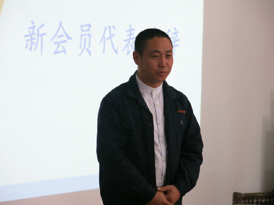 領(lǐng)袖會員丁洪國總經(jīng)理代表新會員講話。
